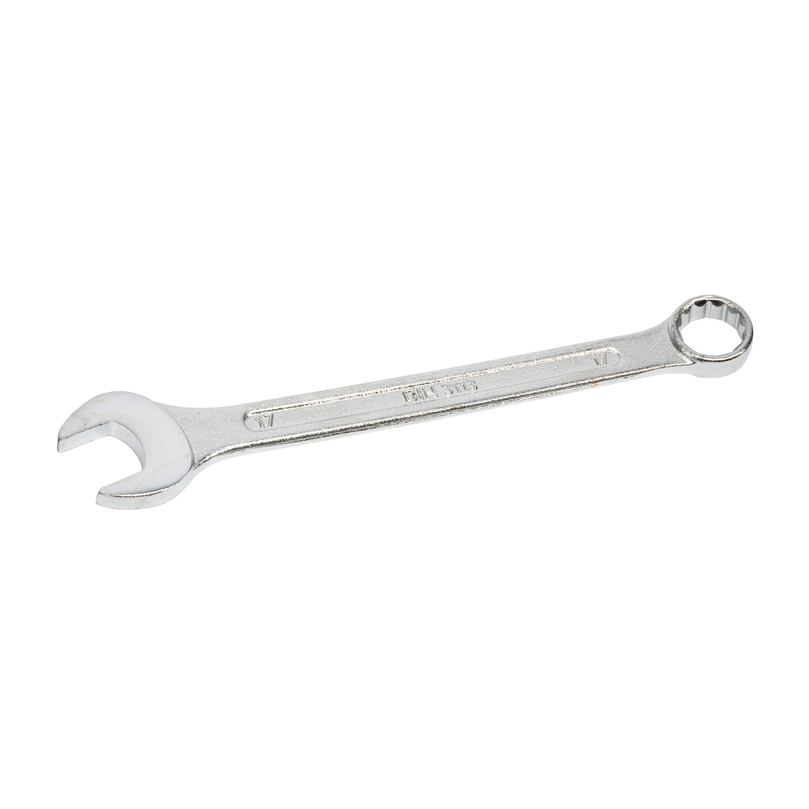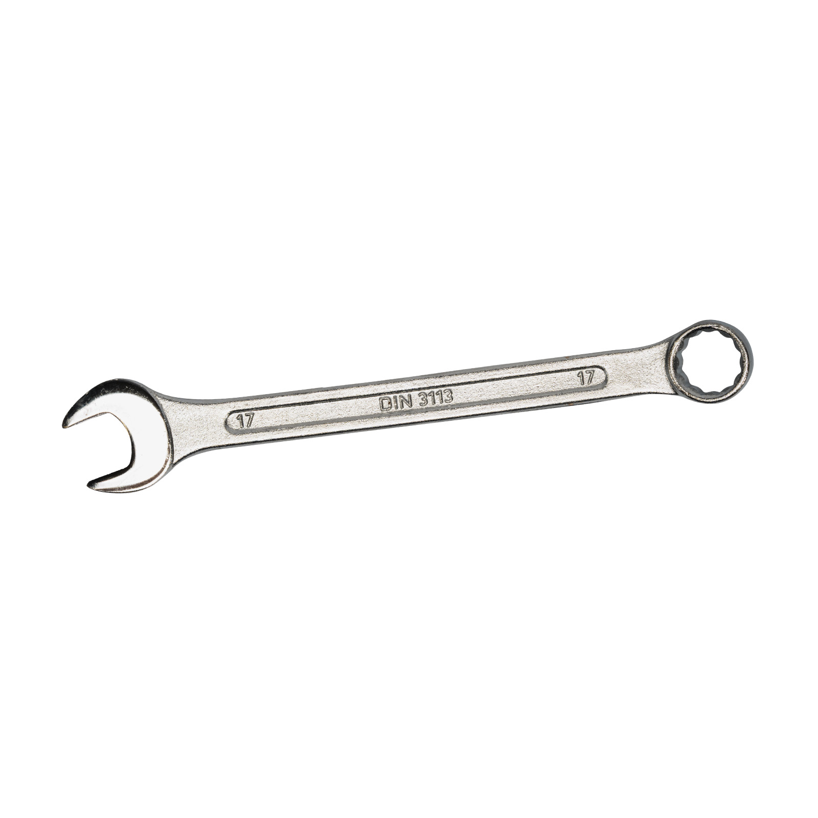 Kombinovaný klíč plochý s otevřenými čelistmi s dvanáctihranným očkem na druhé straně.