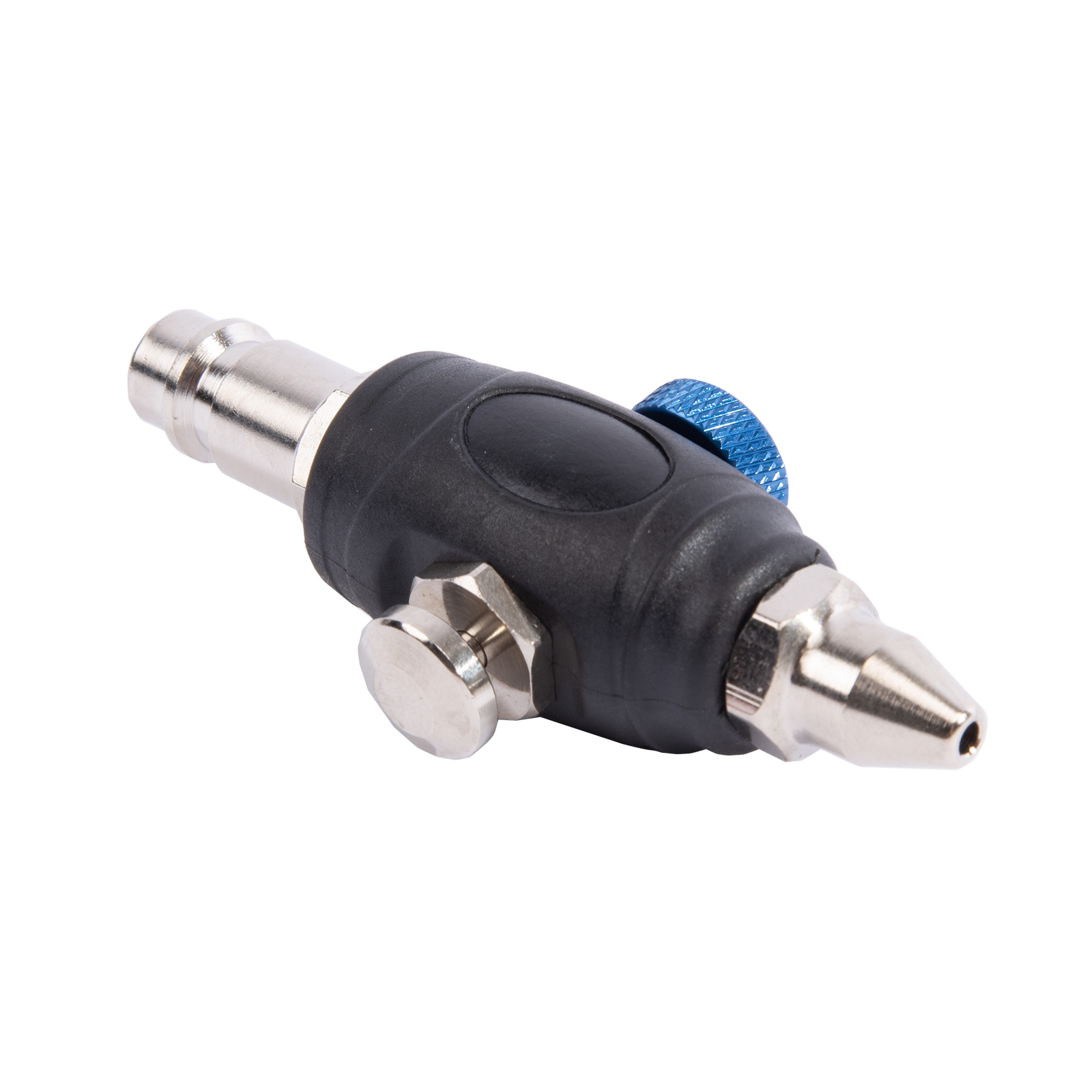 Mini vzduchová ofukovací pistole s tlačítkem 1/4” slouží k čištění pracovních ploch, strojů a drobných komponent stlačeným vzduchem až do tlaku 6,3 bar. Tělo ze sklolaminátu je pevné, odolné proti opotřebení a dobře padne do ruky při běžné údržbě. Ovládací tlačítko poskytuje plynulé řízení průtoku vzduchu.