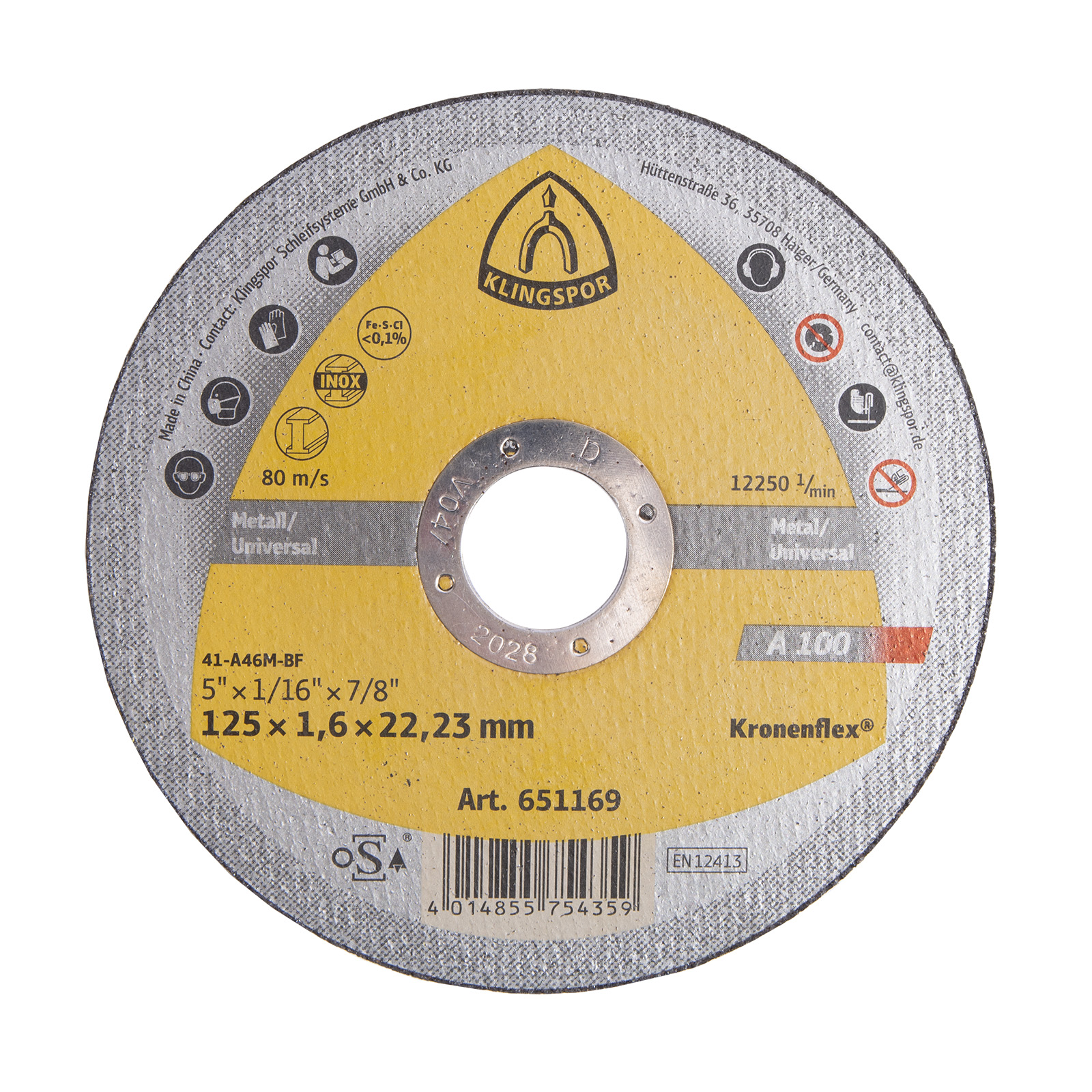 Popis produktu: KLINGSPOR Kotouč řezný A 100 | 125x1,6x22,2 mm
