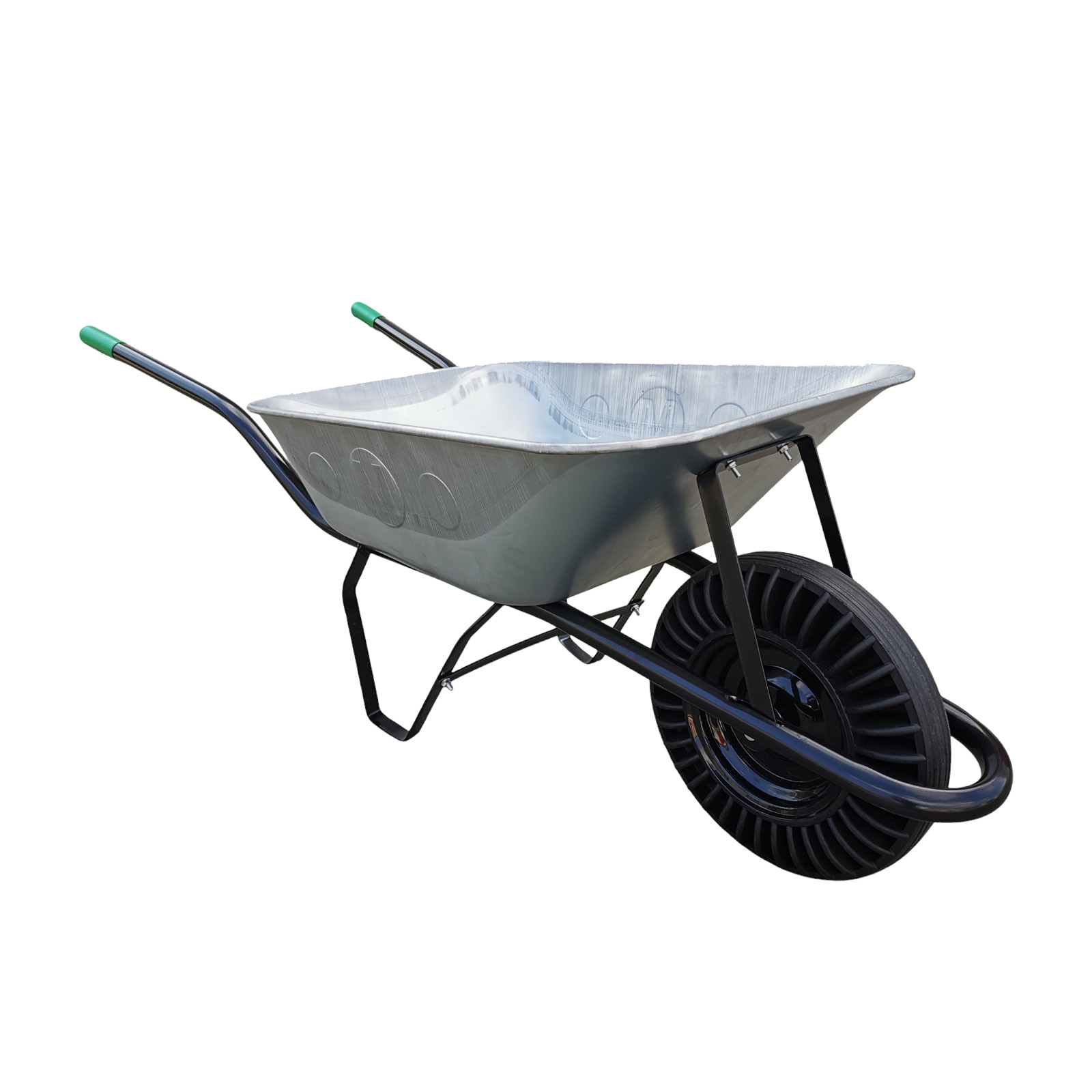 Popis produktu: Kolečko stavební složené, plná pryž (pozinkovaná korba) | 80 l