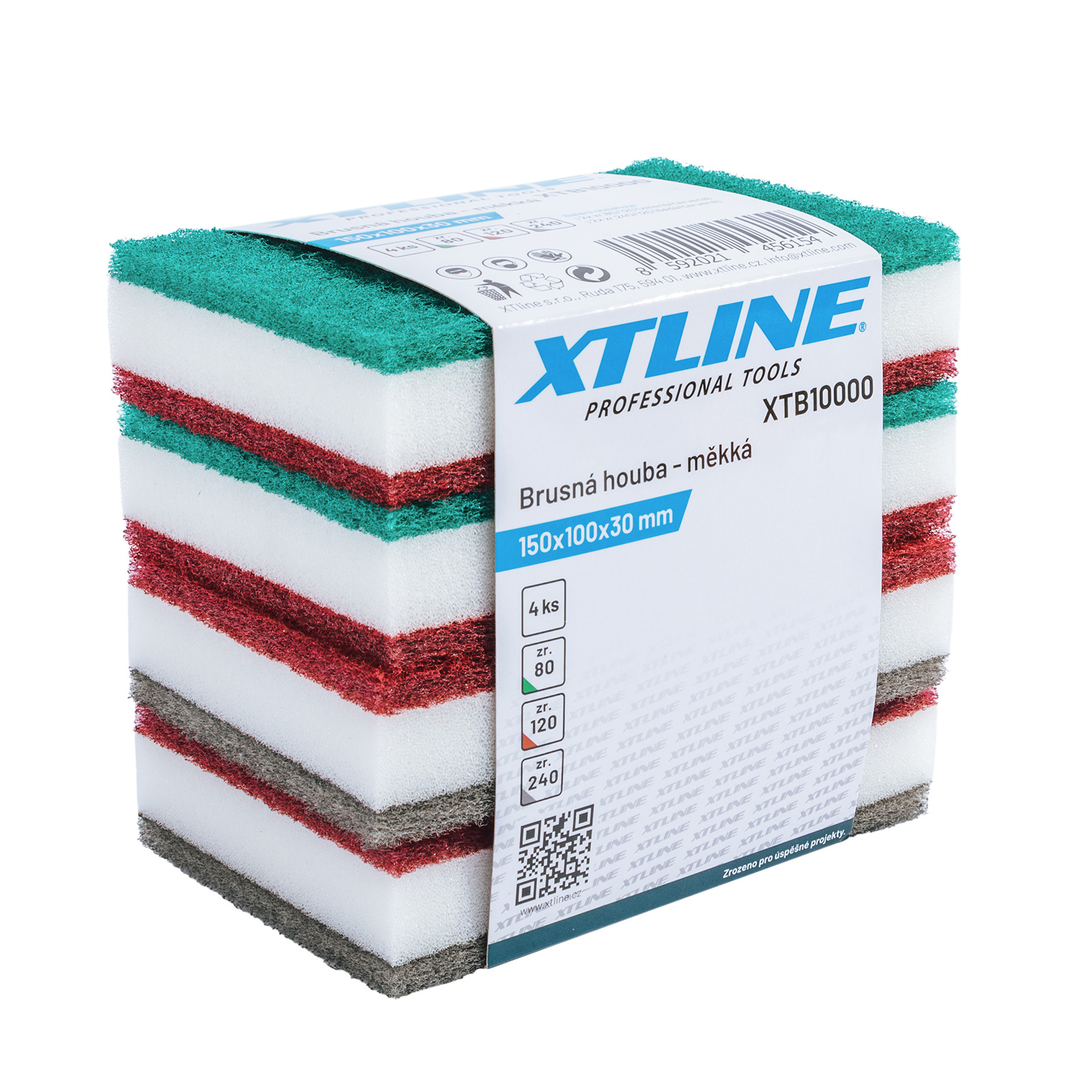 - XTLINE Brusná houba měkká 1bal/4ks | 150x100x30 mm, zr. 80/120/240