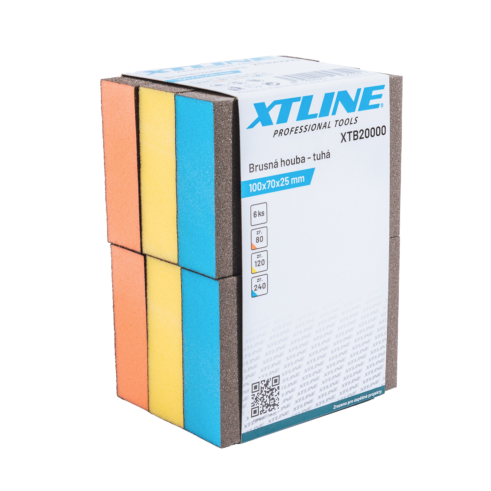 XTLINE Brusná houba tuhá 1bal/6ks | 100x70x25 mm, zr. 80/120/240