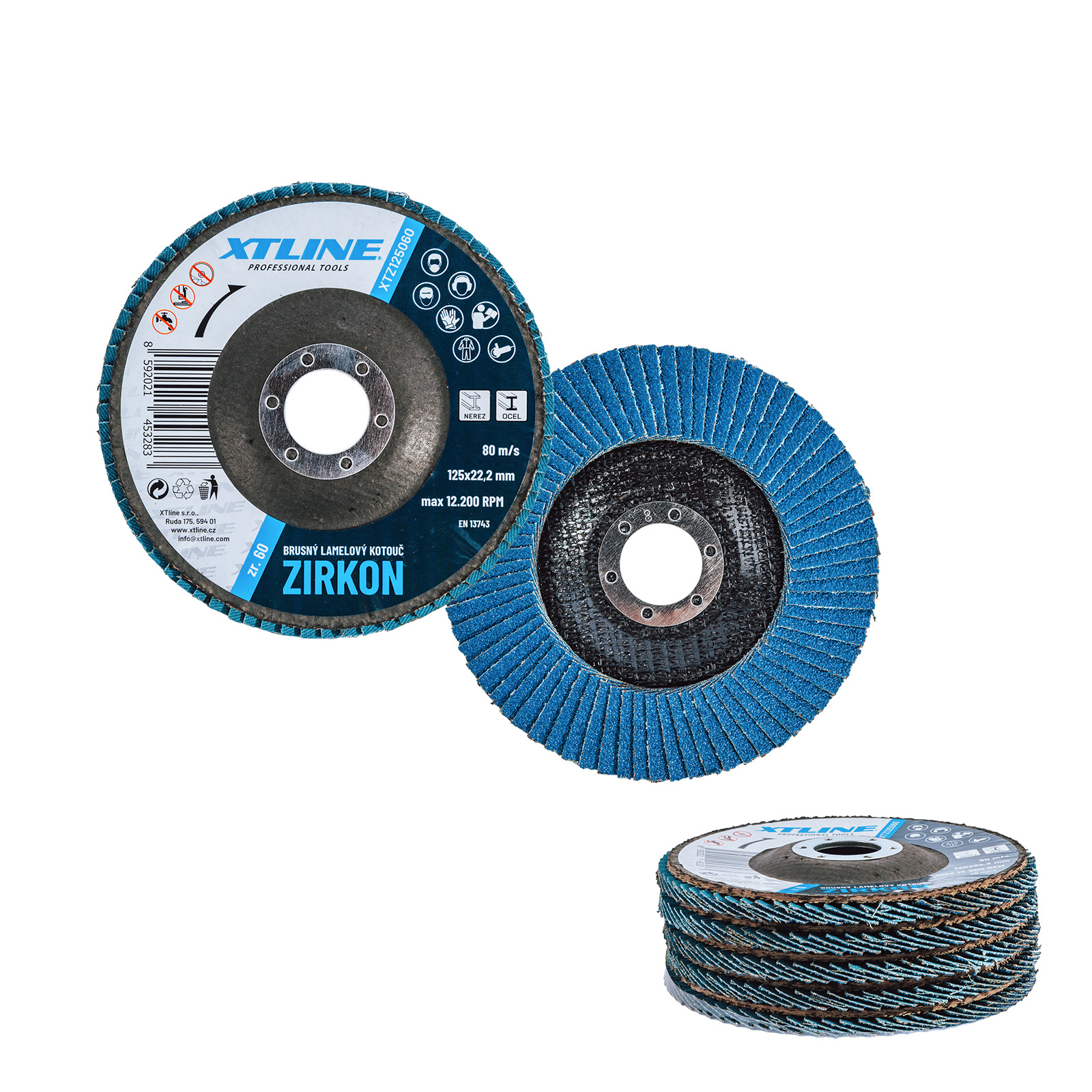 - XTLINE Kotouč brusný lamelový zirkon | 125 mm, zr. 60 (balení 5 ks)