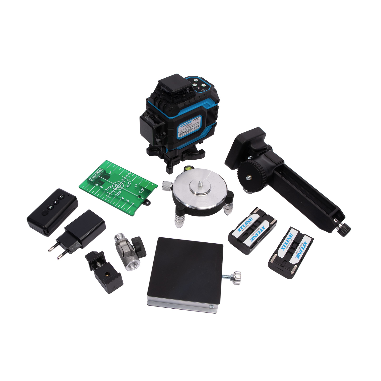 Popis produktu: XTLINE Laser samonivelační křížový 360° / 4D + příslušenství | zelený paprsek