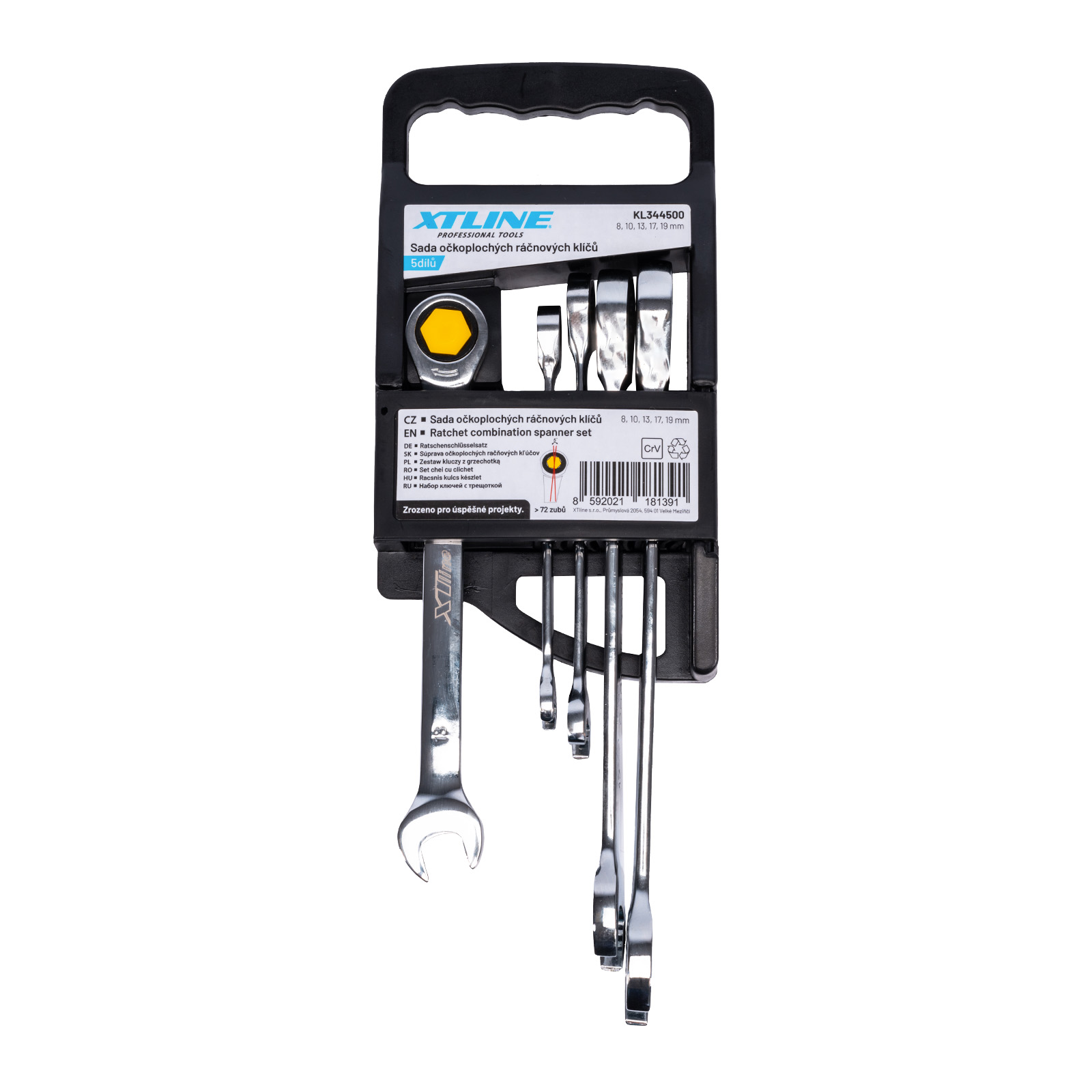 - XTLINE Sada očkoplochých ráčnových klíčů 72 zubů, 5 dílů | 8-19 mm, plastový držák