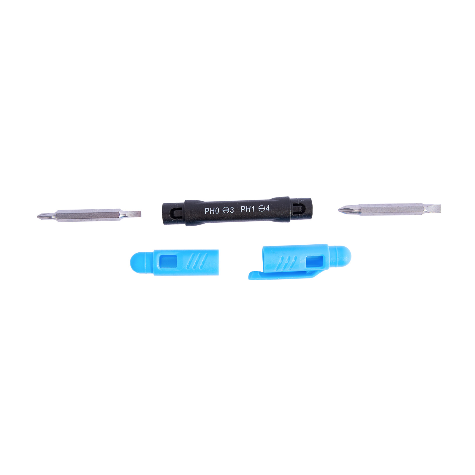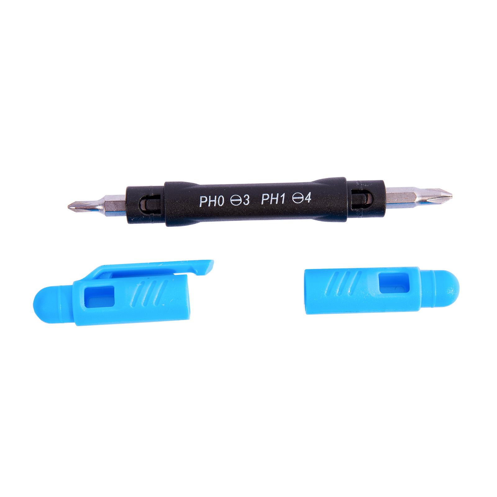 Šroubovák 4v1 s výměnnými bity nabízí čtyři nejpoužívanější typy: ploché PL3 a PL4, křížové PH0 a PH1. Díky kompaktnímu designu a praktickému klipu je ideální na cesty i pro každodenní použití. Všechny bity jsou uloženy v těle rukojeti pro snadnou výměnu.
