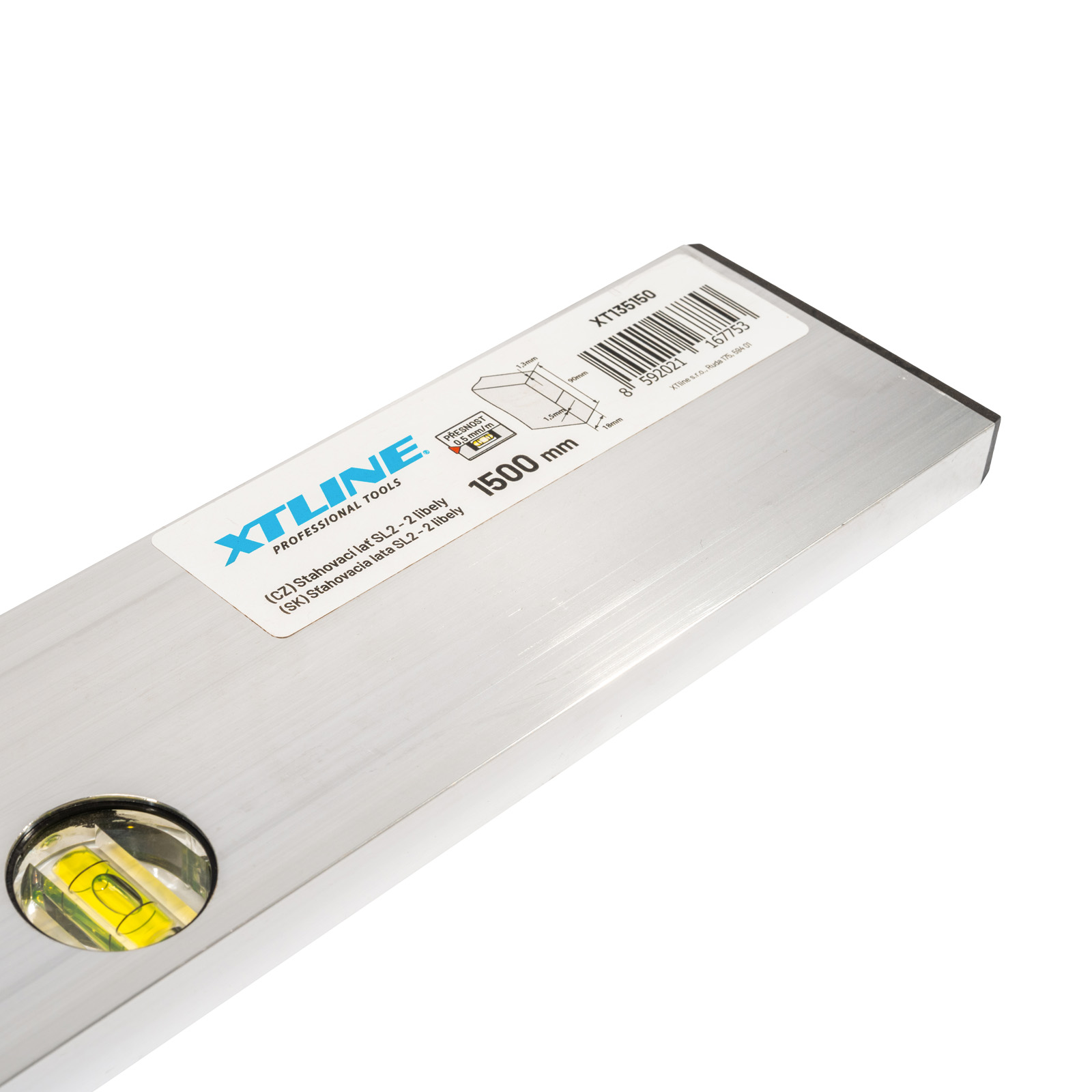 Latě XTLINE s tloušťkou stěny 1,4mm splňuje podmínky vysoké kvality měření. Libely jsou pevně usazeny v hliníkovém těle tak, aby byla zaručena kalibrovaná přesnost po celou dobu životnosti vodováhy a to i v extrémních teplotních změnách a tvrdém zacházení na stavbě. Přesnost libely 0,5mm/1m=0,0285° zaručuje standart pro profesionální použití.