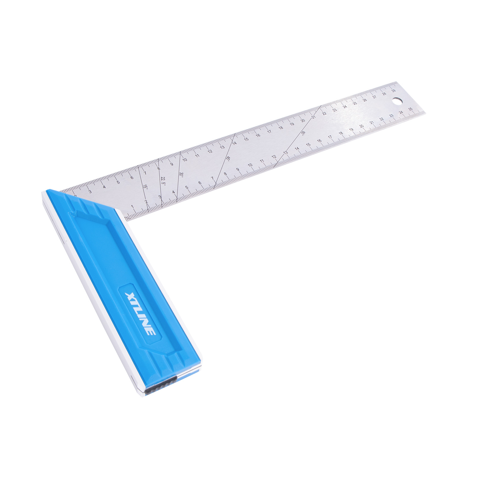 Praktický příložný úhelník s přesným metrickým značením s výbornou čitelností, nerezovým pravítkem a držadlem z kvalitní slitiny hliníku a plastu. Zabudovaný výsuvný doraz v držadle nabízí vynikající komfort a přesnost při práci bez nutnosti přidržovat úhelník rukou (90°). Pravítko má předznačené úhly 15°, 22,5°, 30°, 45° a 60°.